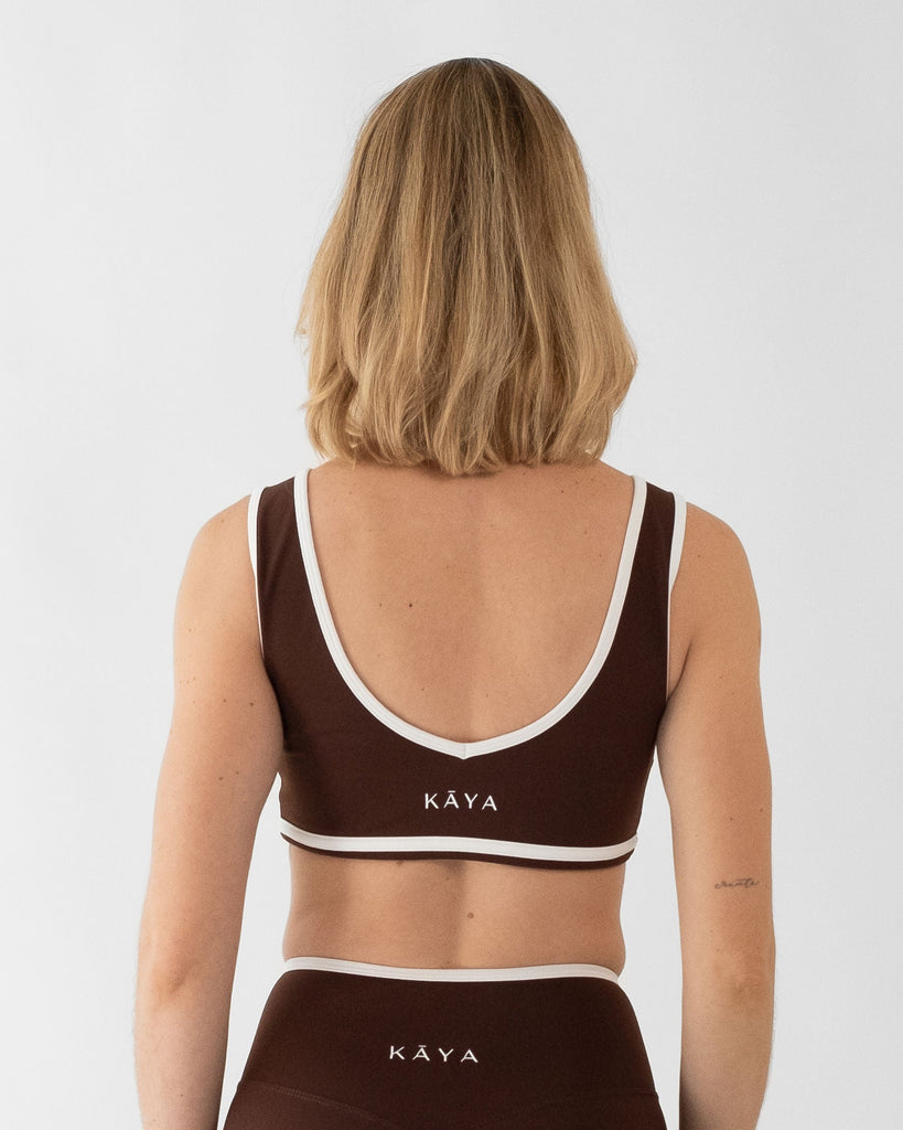 V Neck Two Tone Sport Bra - Brown